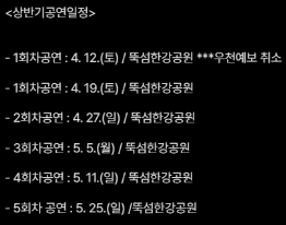| 1회차 | 4월 12일 (토) | 20:30 ~ 20:45 |